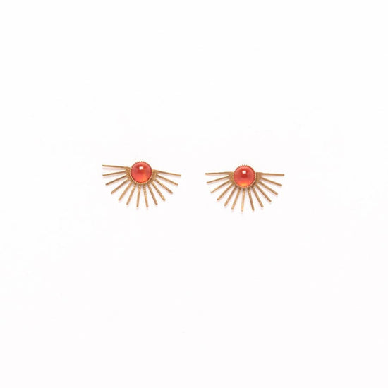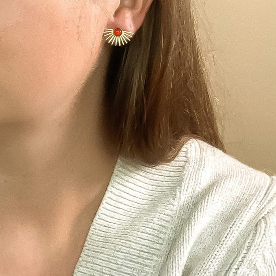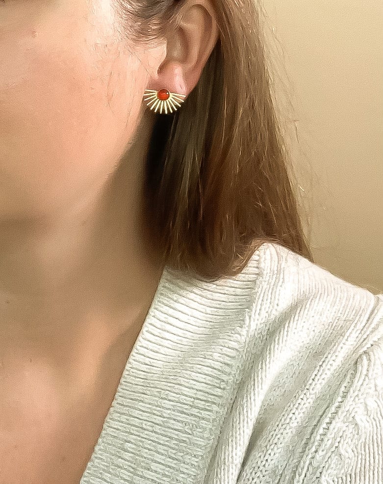 - Carnelian stones set in vintage brass bezels with brass "beams"