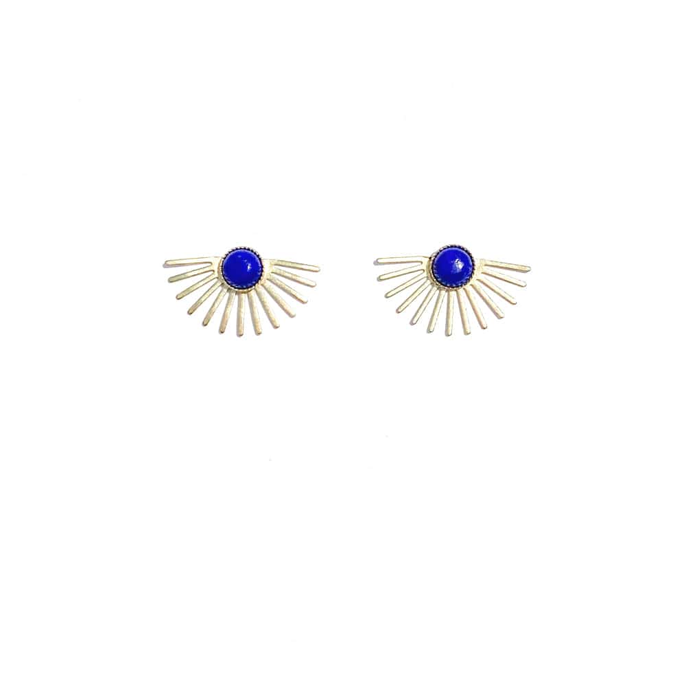 - Lapis stones set in vintage brass bezels with brass "beams"