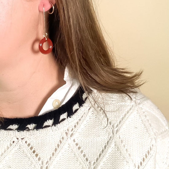 Carnelian Glass Loop Earrings