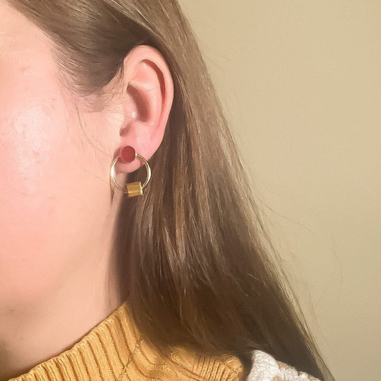 - Brass circles with Carnelian and Tiger's Eye stones in settings