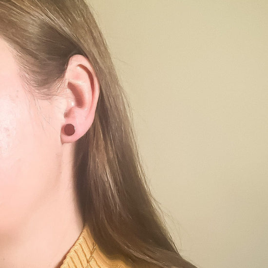 - Circle Carnelian and Square Tiger's Eye stones in brass settings
