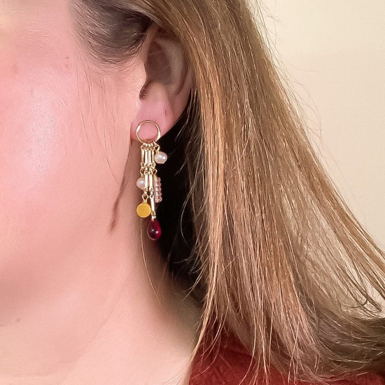 Charm Earrings with Yellow Jasper, Freshwater Pearls, Vintage Glass