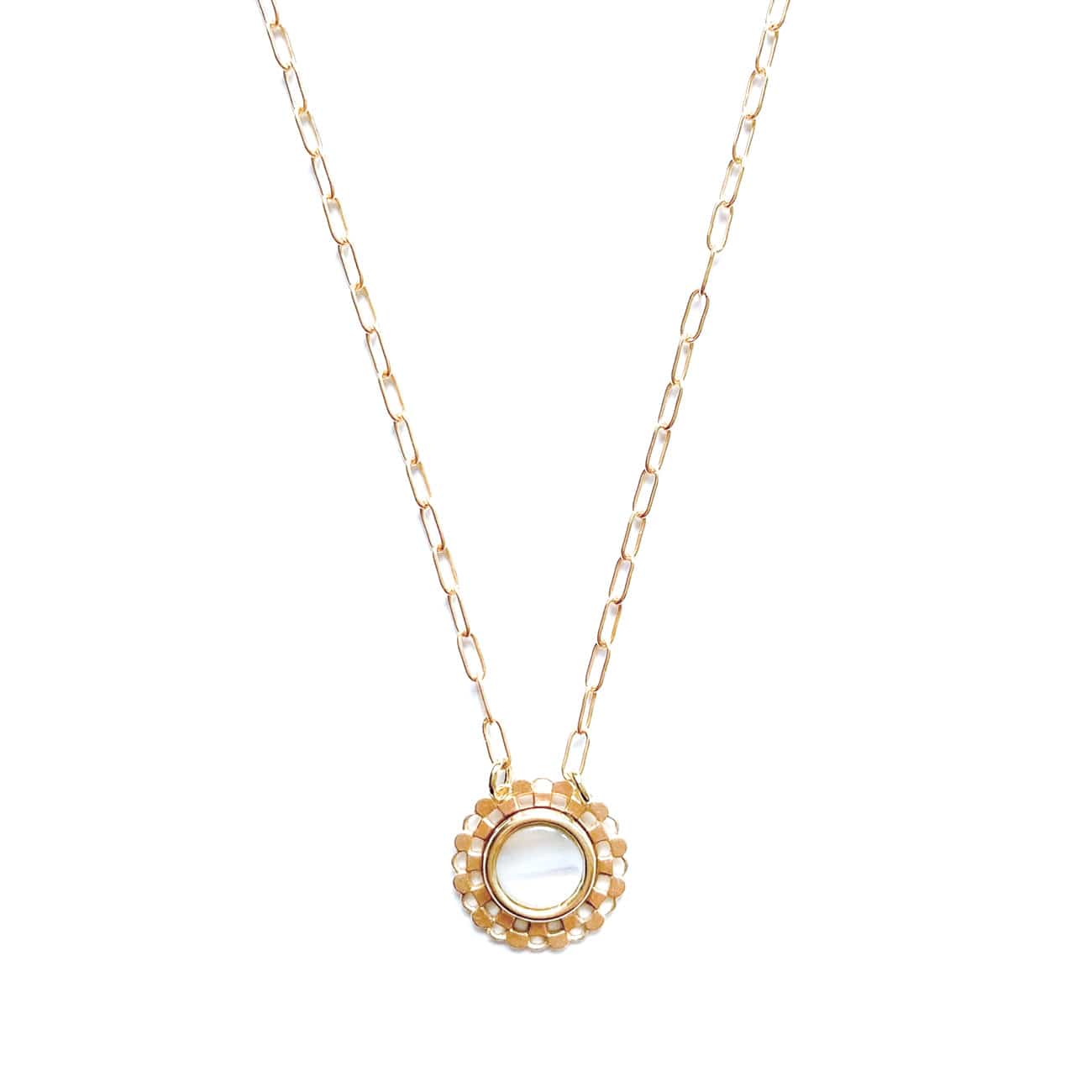Checkered Circle Necklace in Mother of Pearl