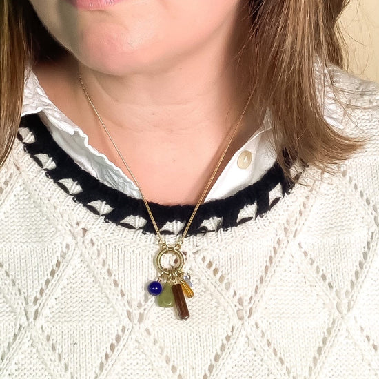 Cluster Charm Necklace in Mocha, Jade, Cobalt, and Topaz