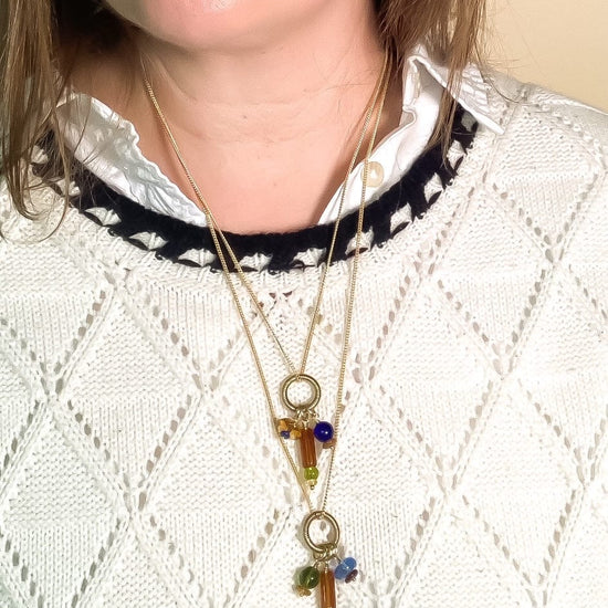 Cluster Charm Necklace in Teal, Cobalt, and Topaz