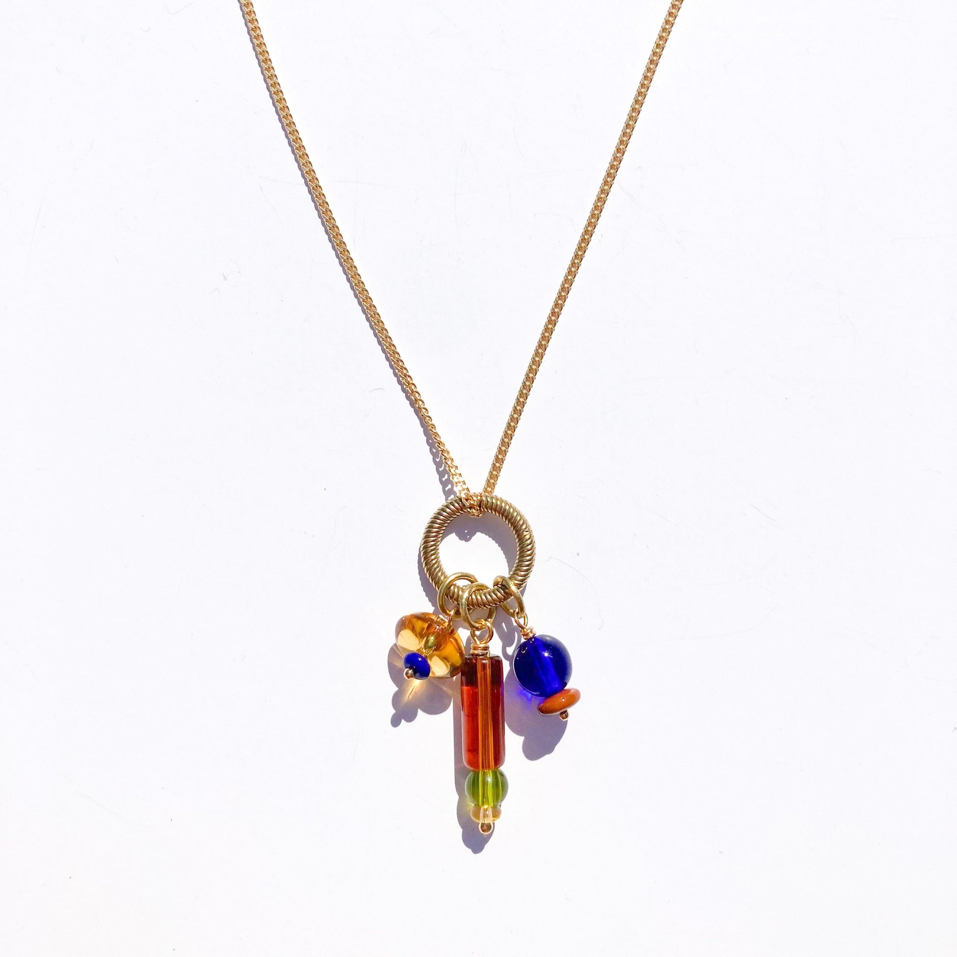 - Vintage brass twisted circle with topaz and cobalt glass charms