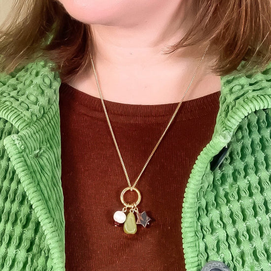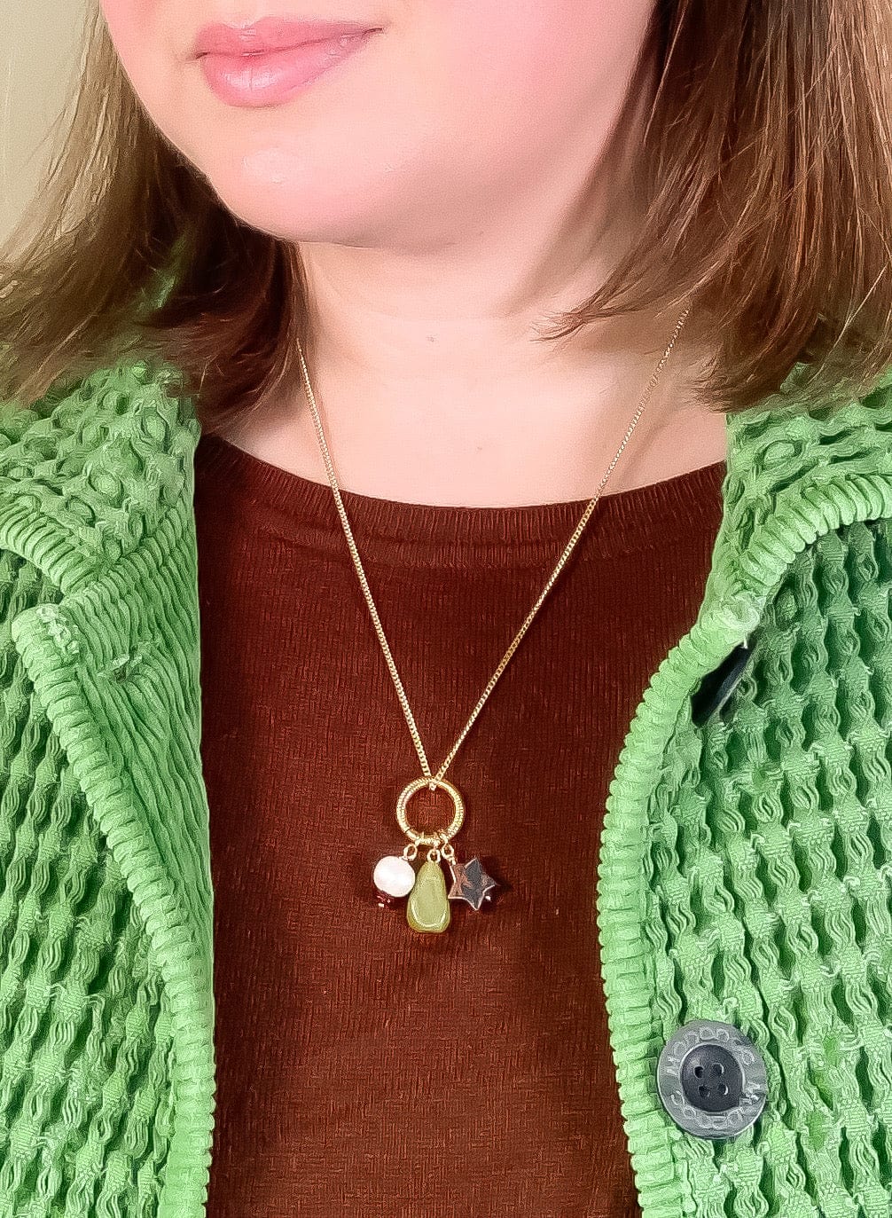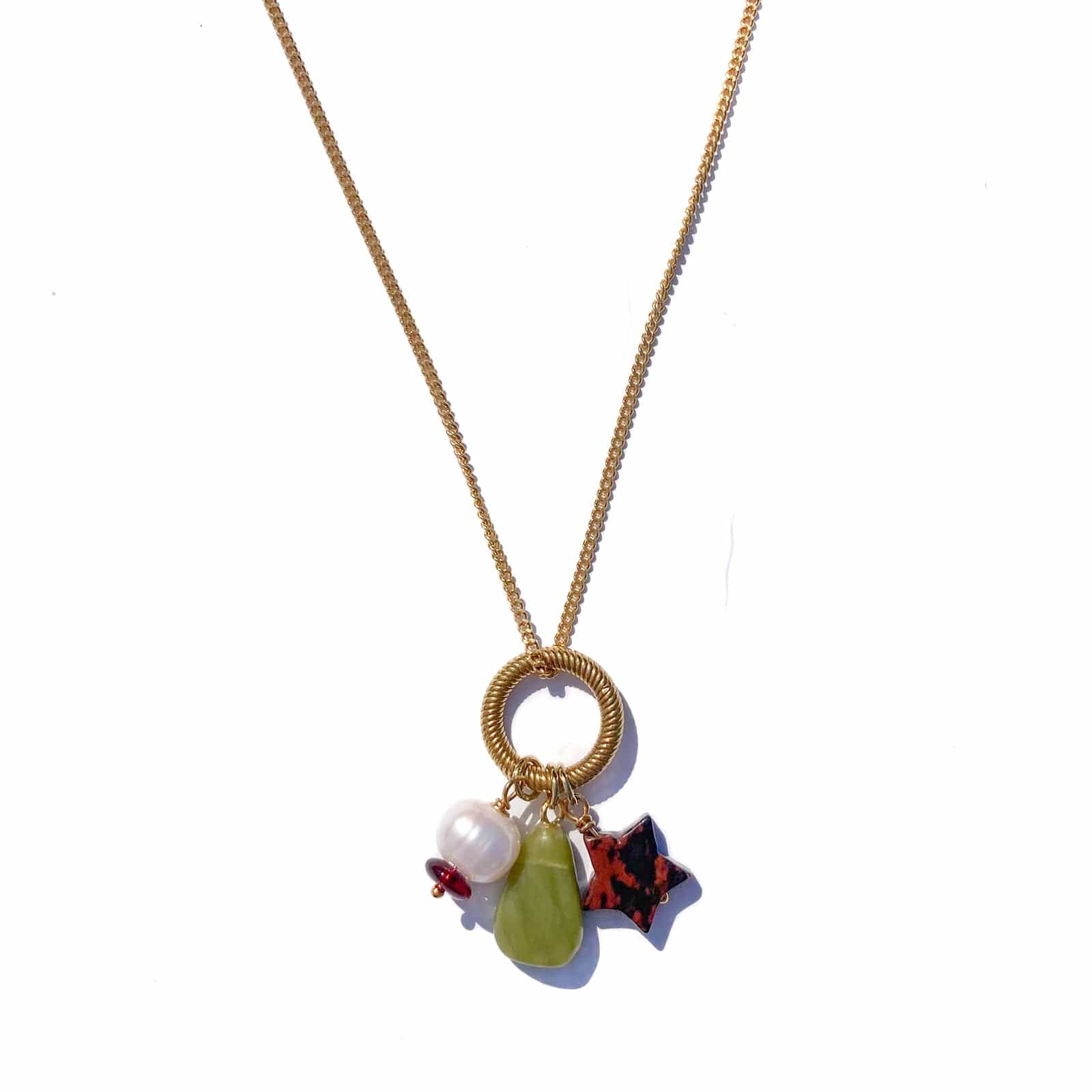 Cluster Charm Necklace- Wyoming Jade, Pearl, Mahogany Obsidian
