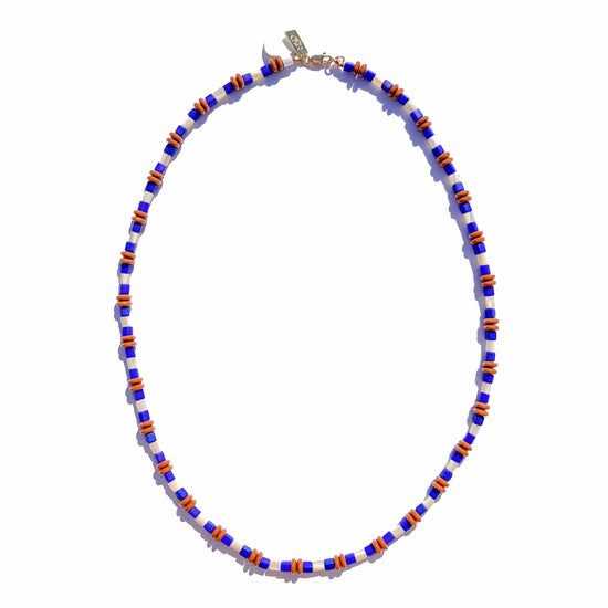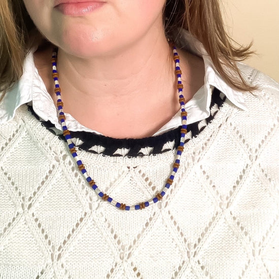 Cobalt, Mocha, and Mother of Pearl Beaded Necklace