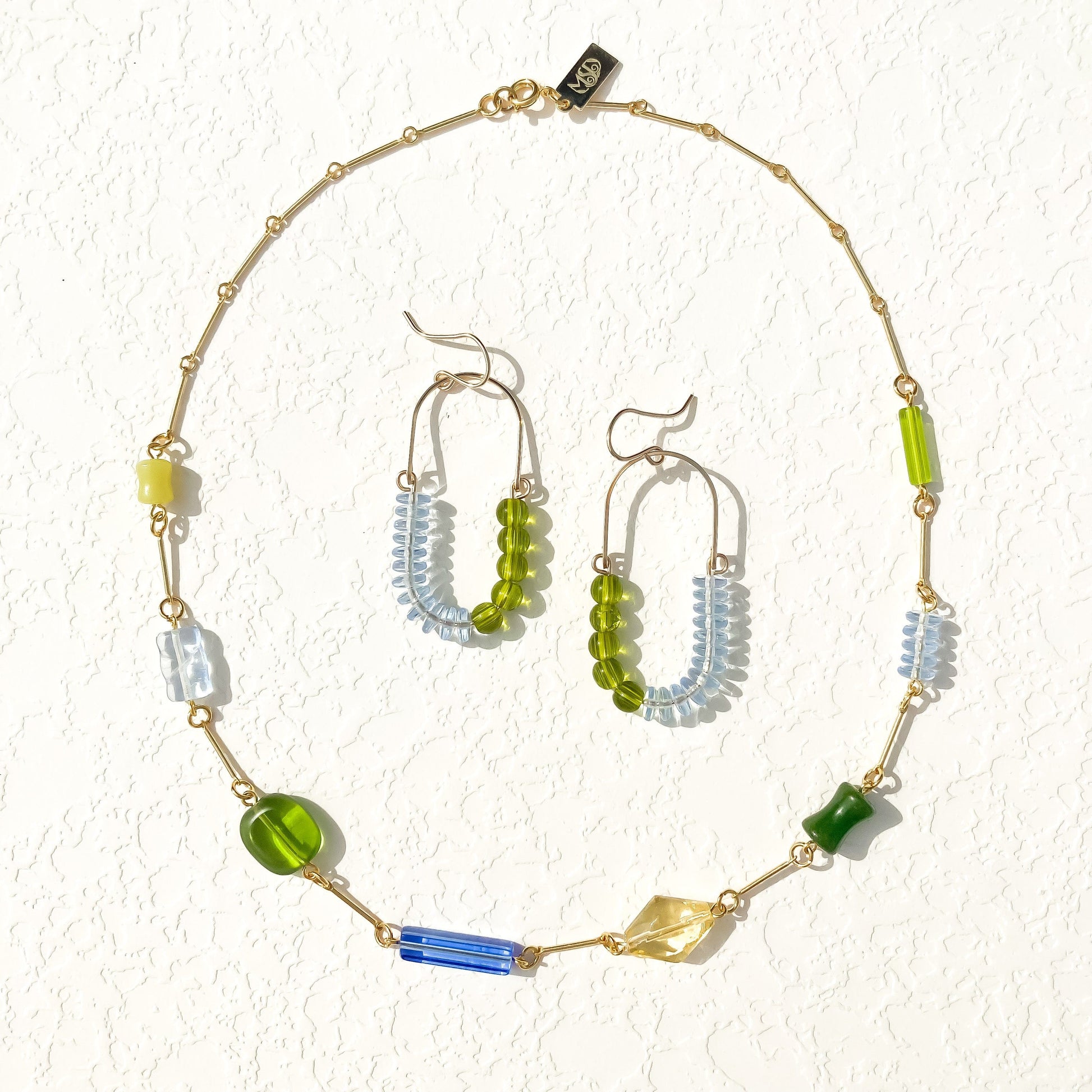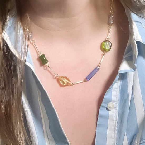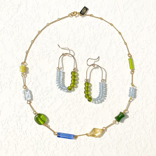 Vintage glass, Serpentine, and Ruby Zoisite beads