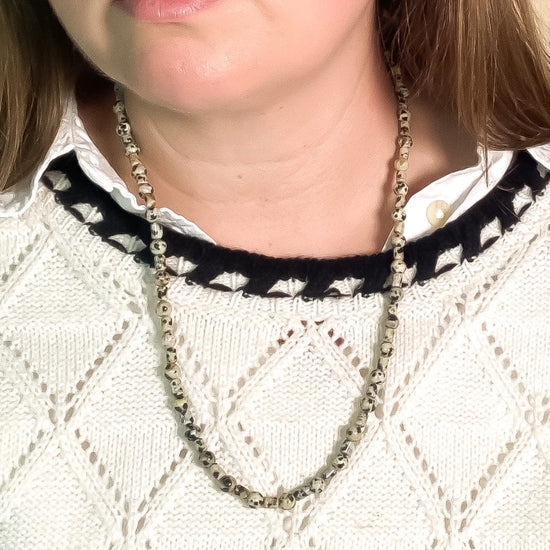To avoid accelerating the patina process, do not shower with your jewelry on or store it in the bathroom, as water and humidity will darken the metal.