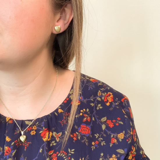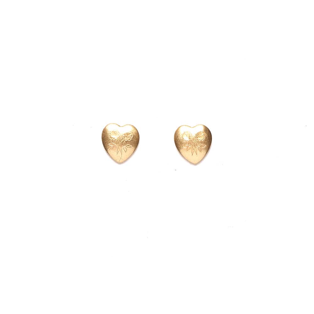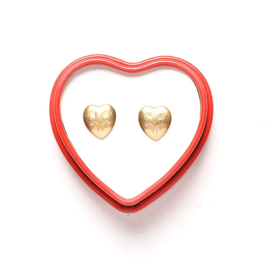 Vintage brass engraved heart stampings with sterling silver posts and backs. Studs are 10mm x 10mm. Earrings are packaged in a red heart shaped tin with lid.