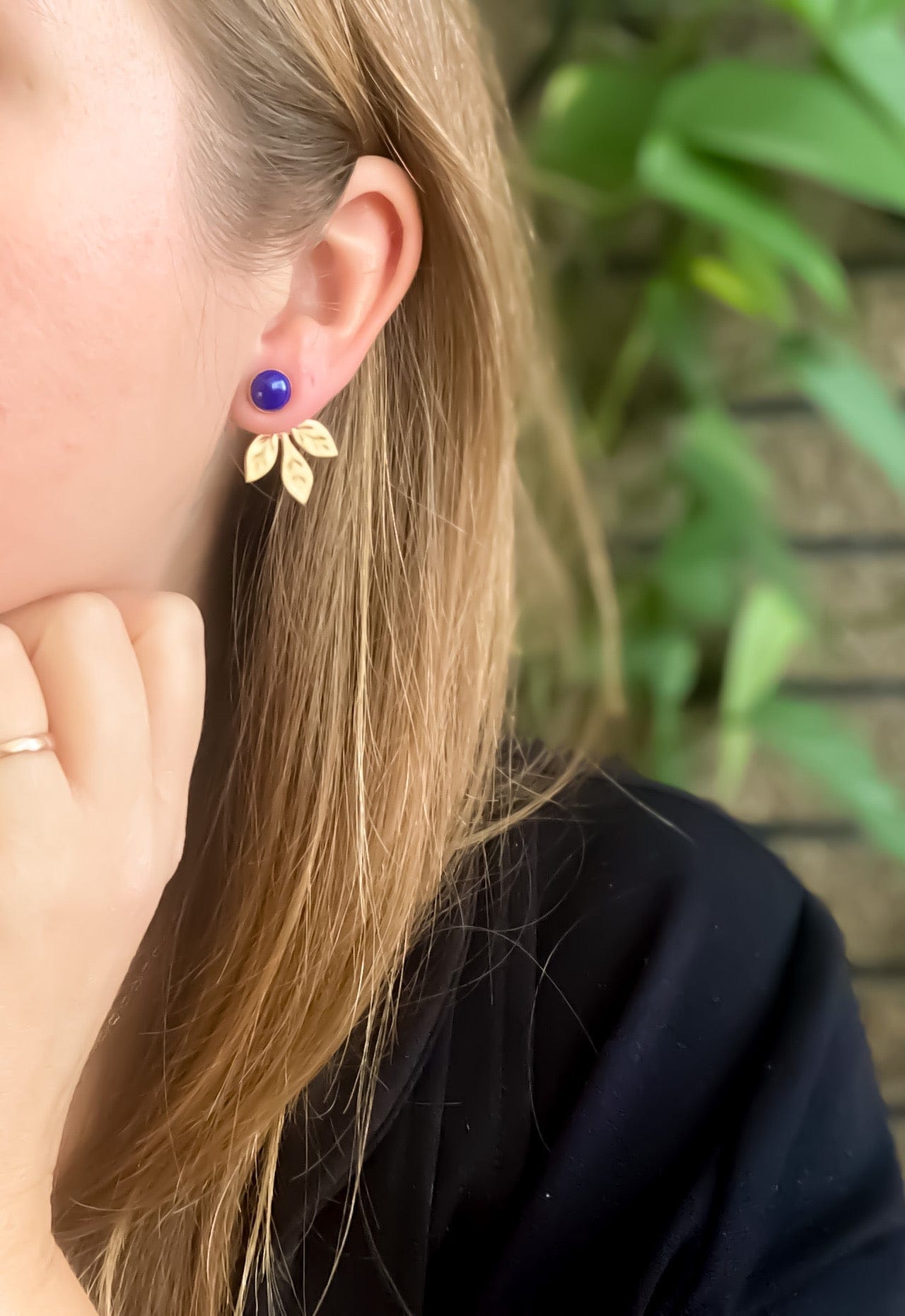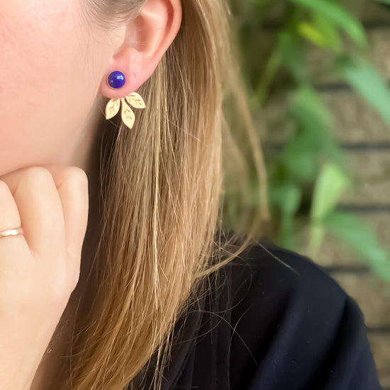 Engraved Leaf Jackets with Lapis Studs
