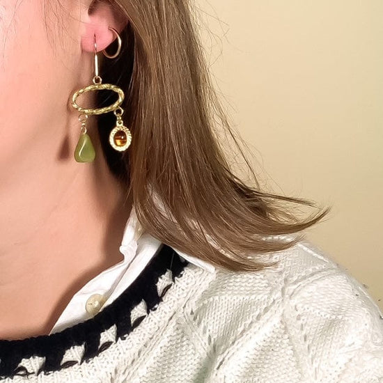 Horizontal Oval Earrings with Jade + Tortoise Charms