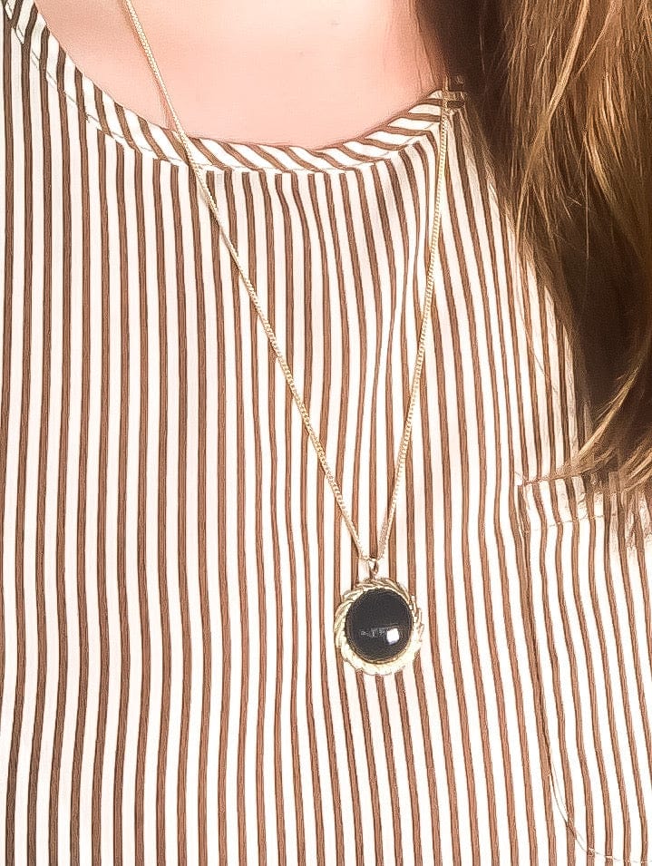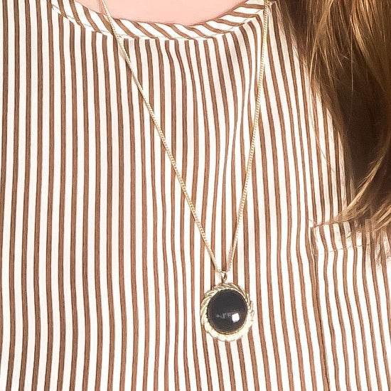 - Vintage laurel finding converted to bezel setting for a large round Onyx cabochon Pendant is 1" x 1 1/8"