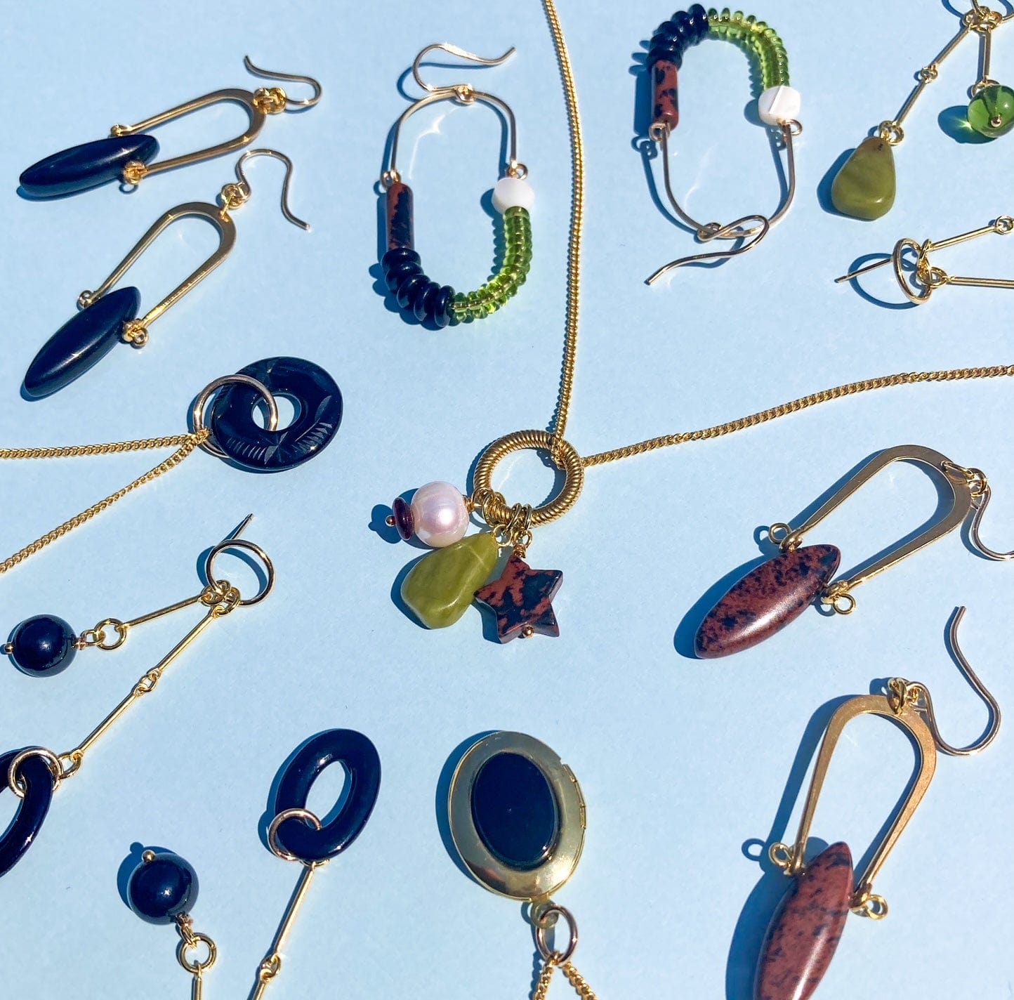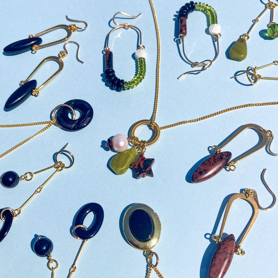 Mahogany Obsidian, Mother of Pearl, Olive, + Black Balance Earrings