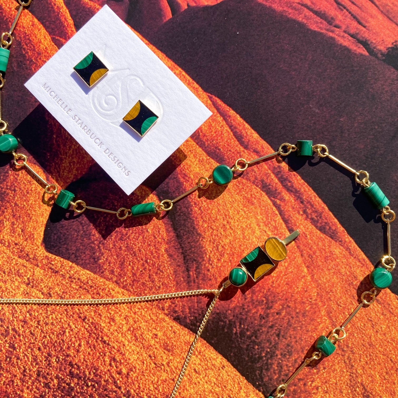 Malachite, Tiger's Eye, and Onyx Square Studs