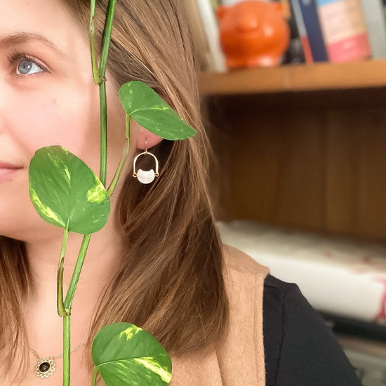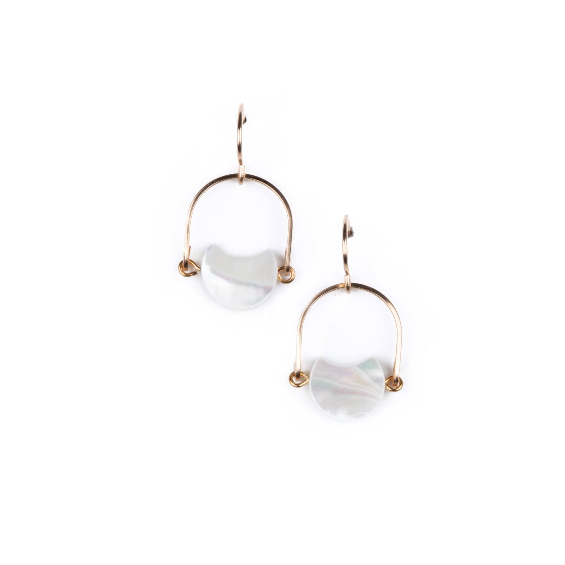 - Mother of Pearl moon beads with curved 14kt gold filled wire