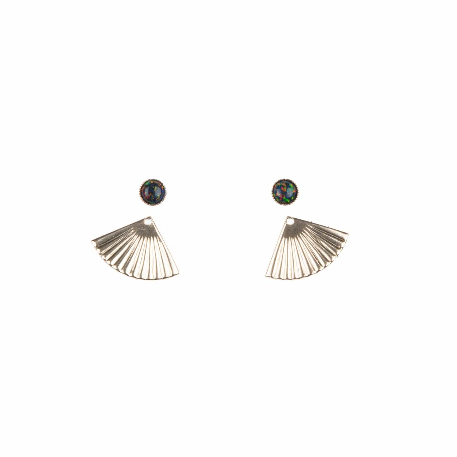 Mini Pleat Jacket Earrings with Black Opal Studs