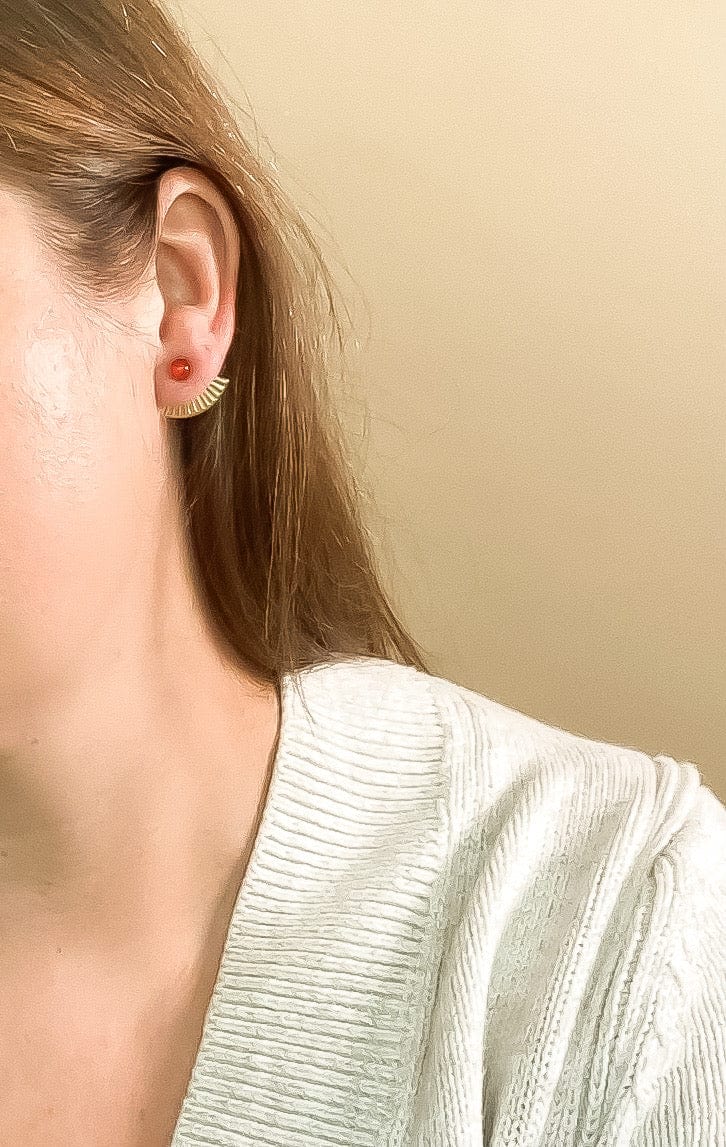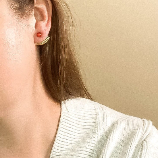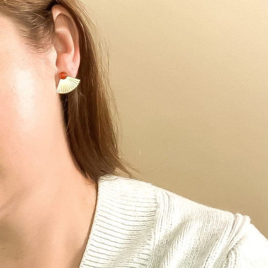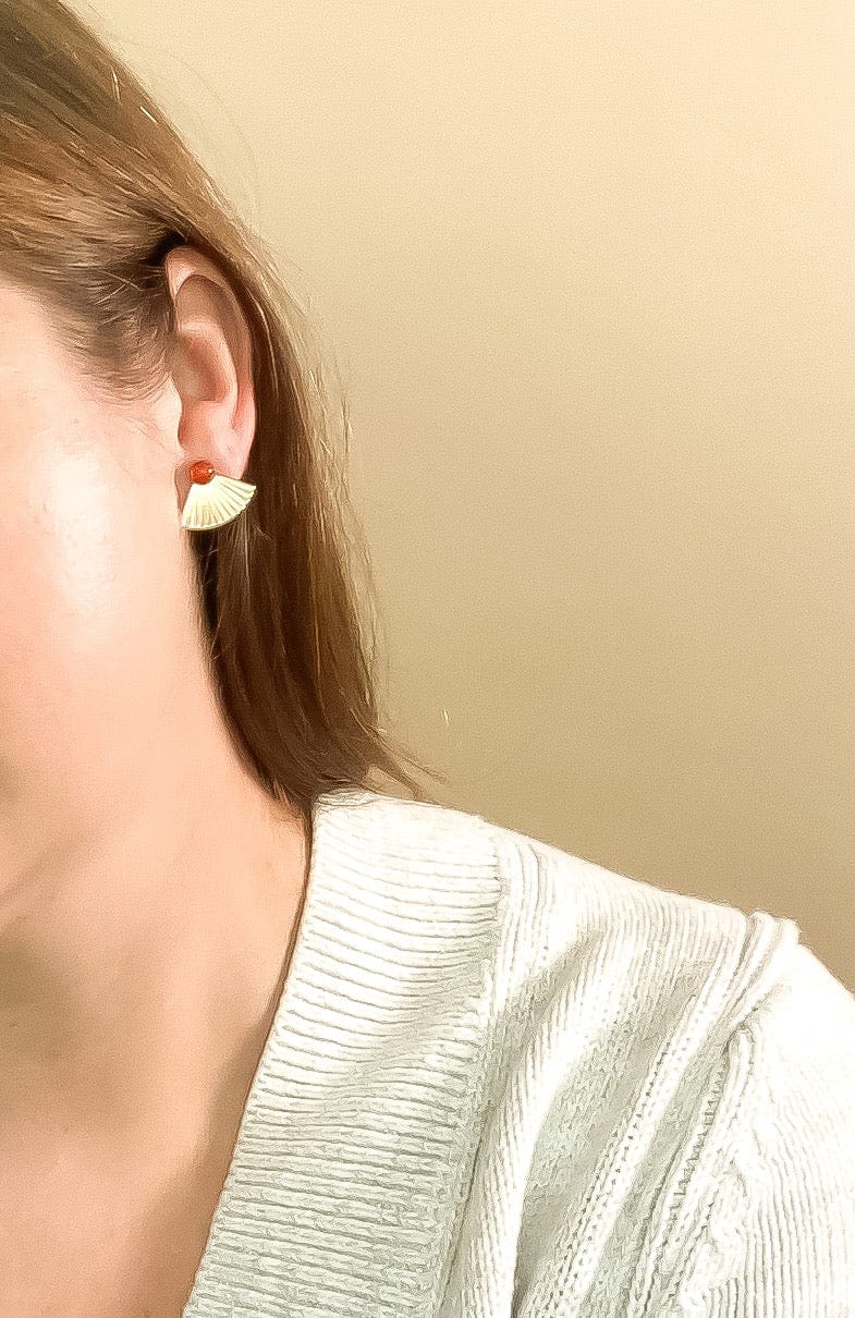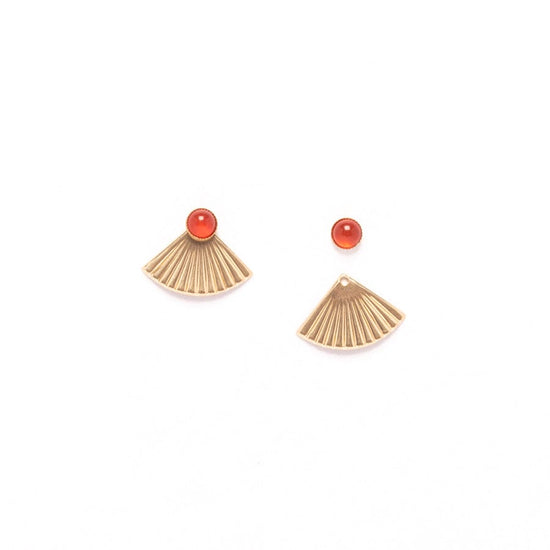 - Carnelian cabochons set in vintage brass bezels and vintage brass fan shaped jackets