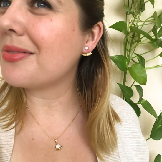- Earrings including the jacket are 3/4" at the widest point and about 1/2" long.