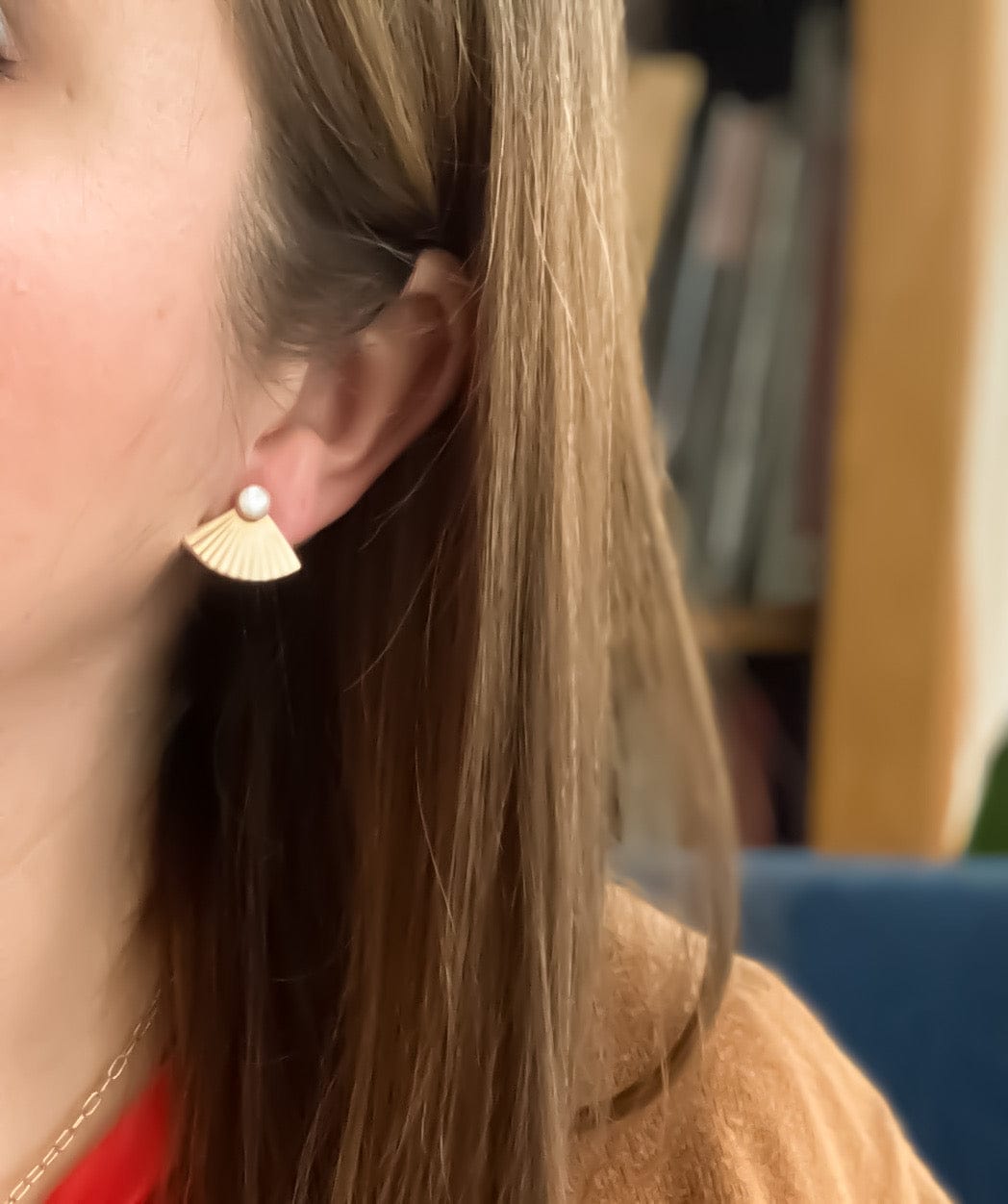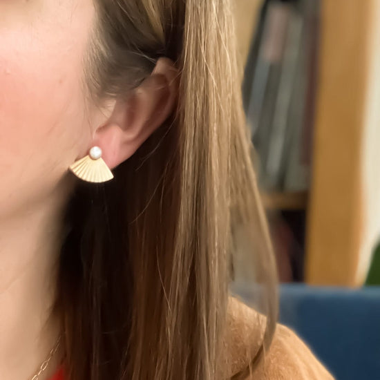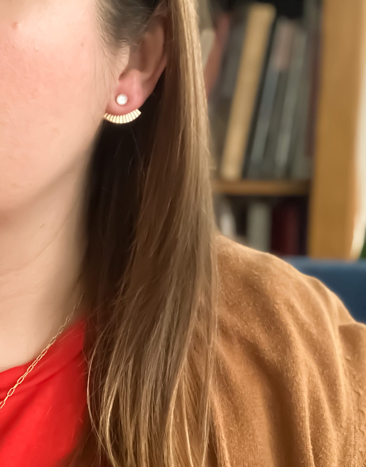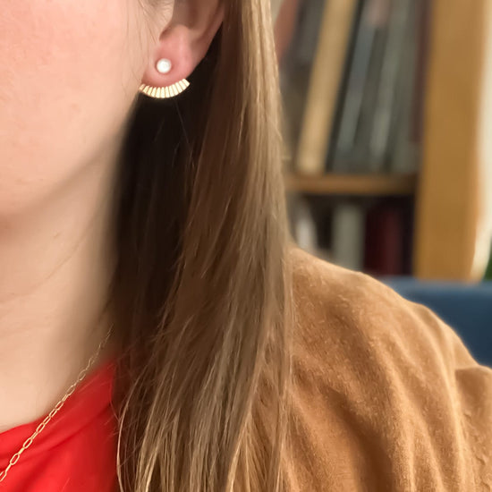 Mini Pleat Jacket Earrings with Mother of Pearl Studs