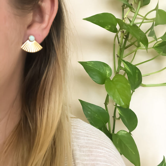 Mini Pleat Jacket Earrings with Opal Studs