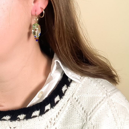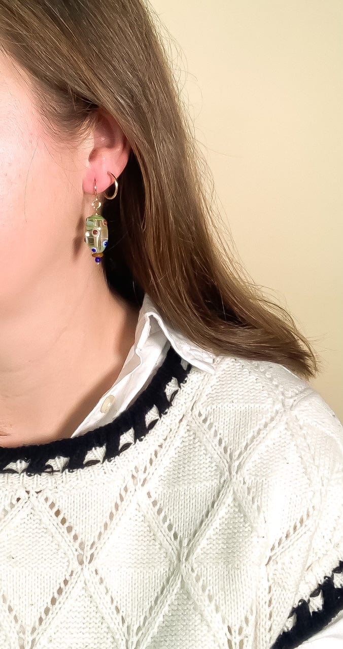 Oval glass lampwork beads with multicolored dots + cobalt and brown beads