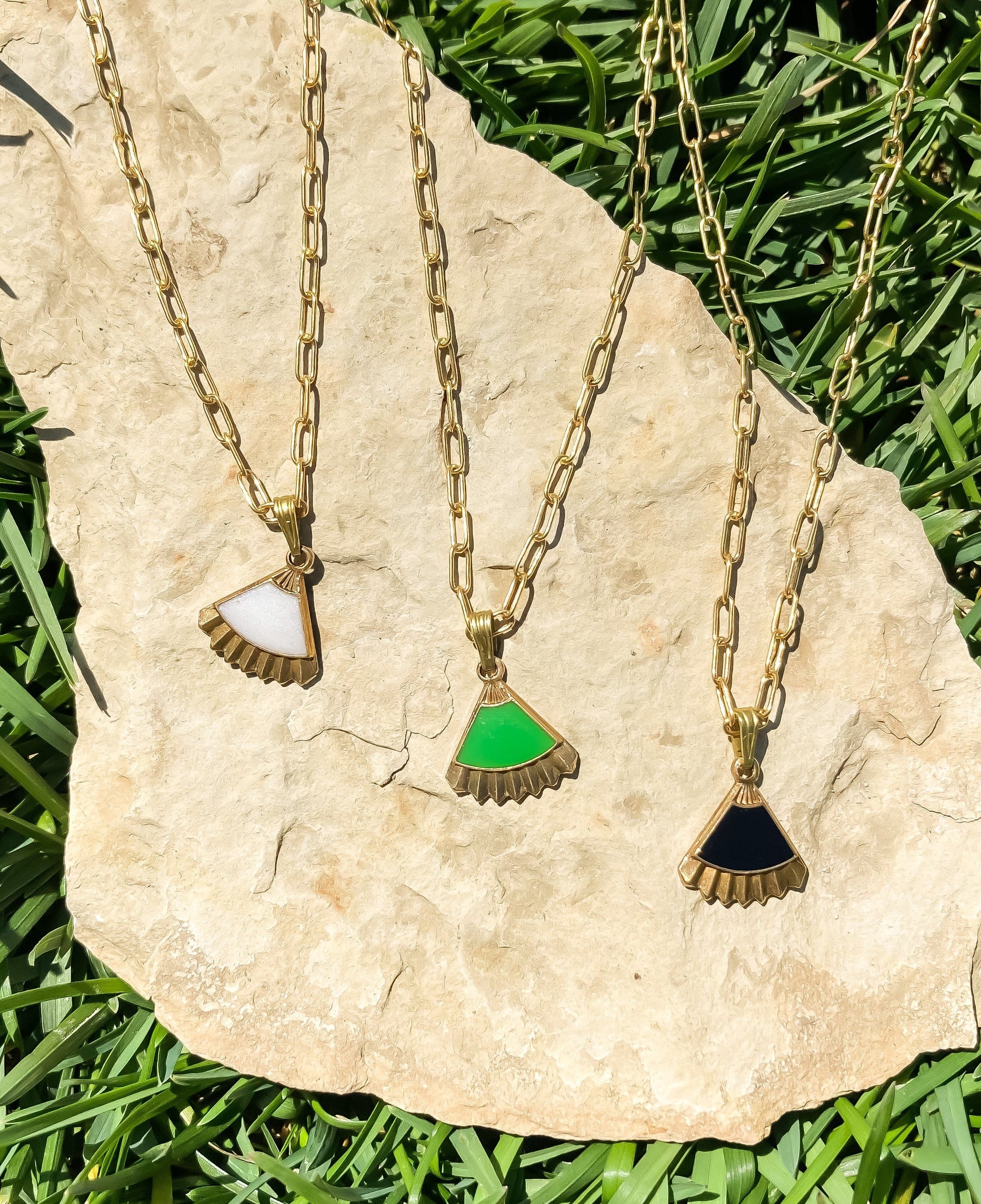 - Brass charm with hand applied Pearl enamel resin inlay