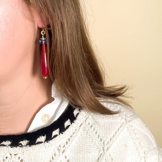 Red Jade teardrop beads (more of a magenta color, than red) with bluel beads
