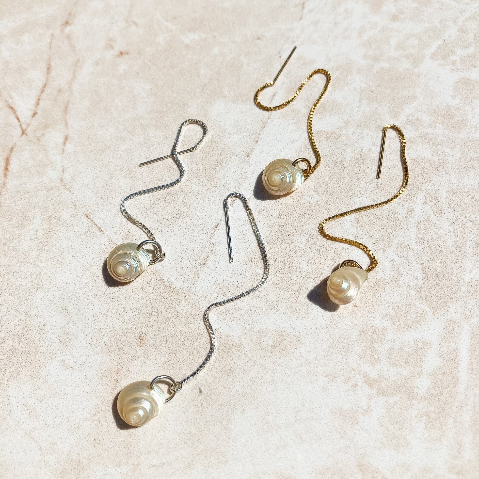 - 14kt Gold Fill threaders with vintage natural shell beads