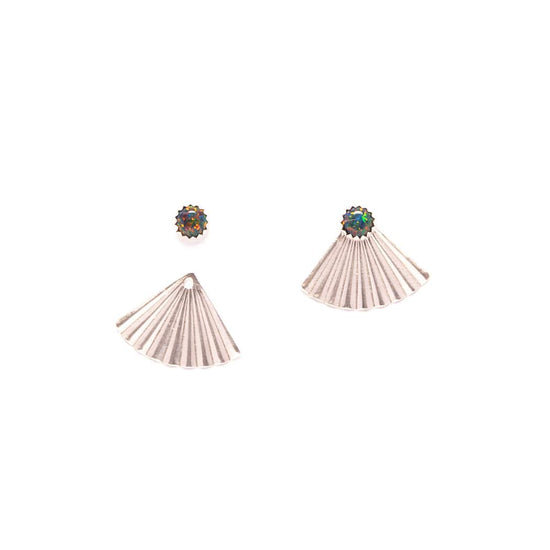 Silver Mini Pleat Jacket Earrings with Black Opal Studs