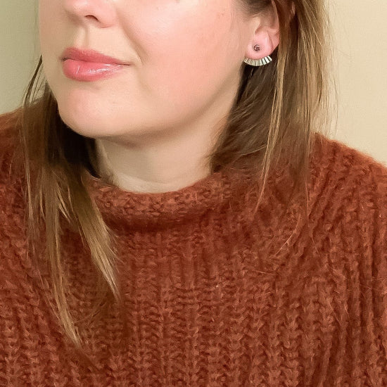 - Earrings including the jacket are 3/4" at the widest point and about 1/2" long.
