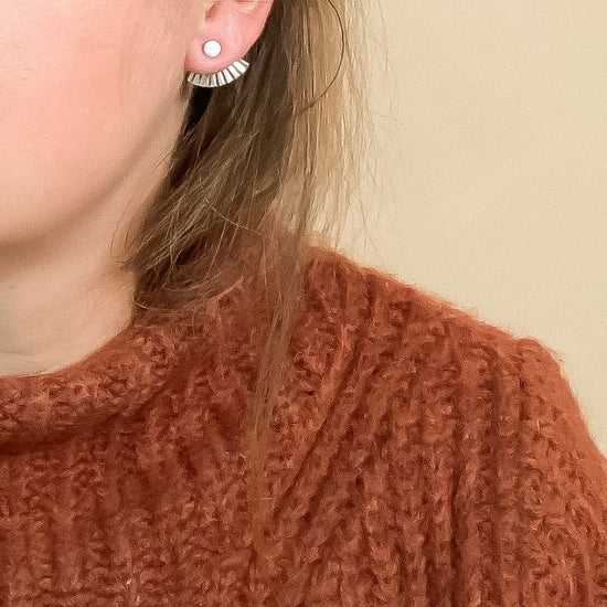 Silver Mini Pleat Jacket Earrings with Opal Studs
