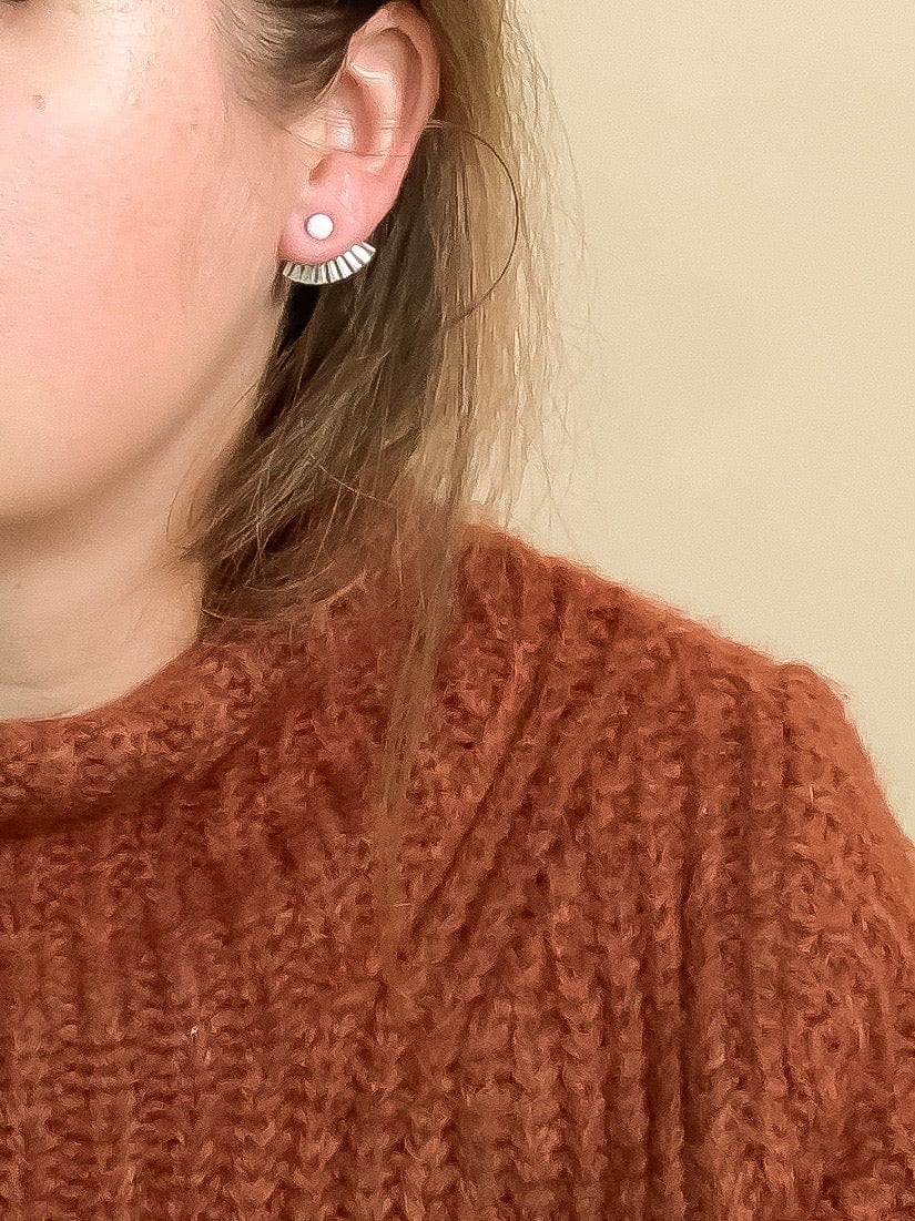 - Earrings including the jacket are 3/4" at the widest point and about 1/2" long.