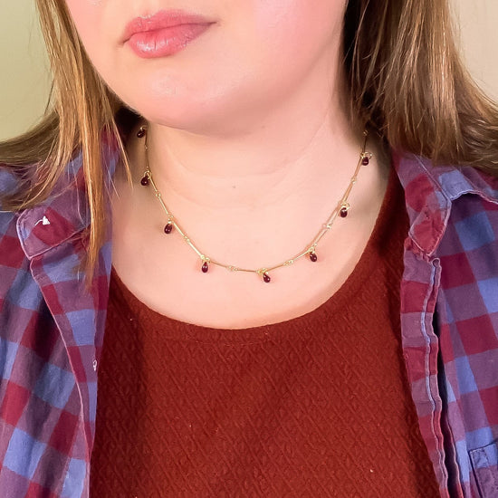 Teardrop Fringe Necklace in Oxblood Glass