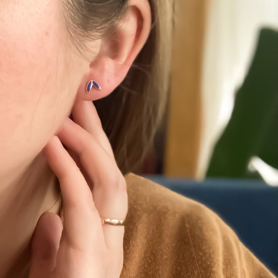 - Tiny brass leaf 'laurel' cutouts with hand applied enamel resin in Ultramarine