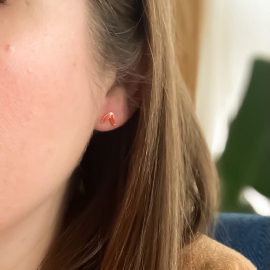 - Tiny brass leaf 'laurel' cutouts with hand applied enamel resin in Vermillion