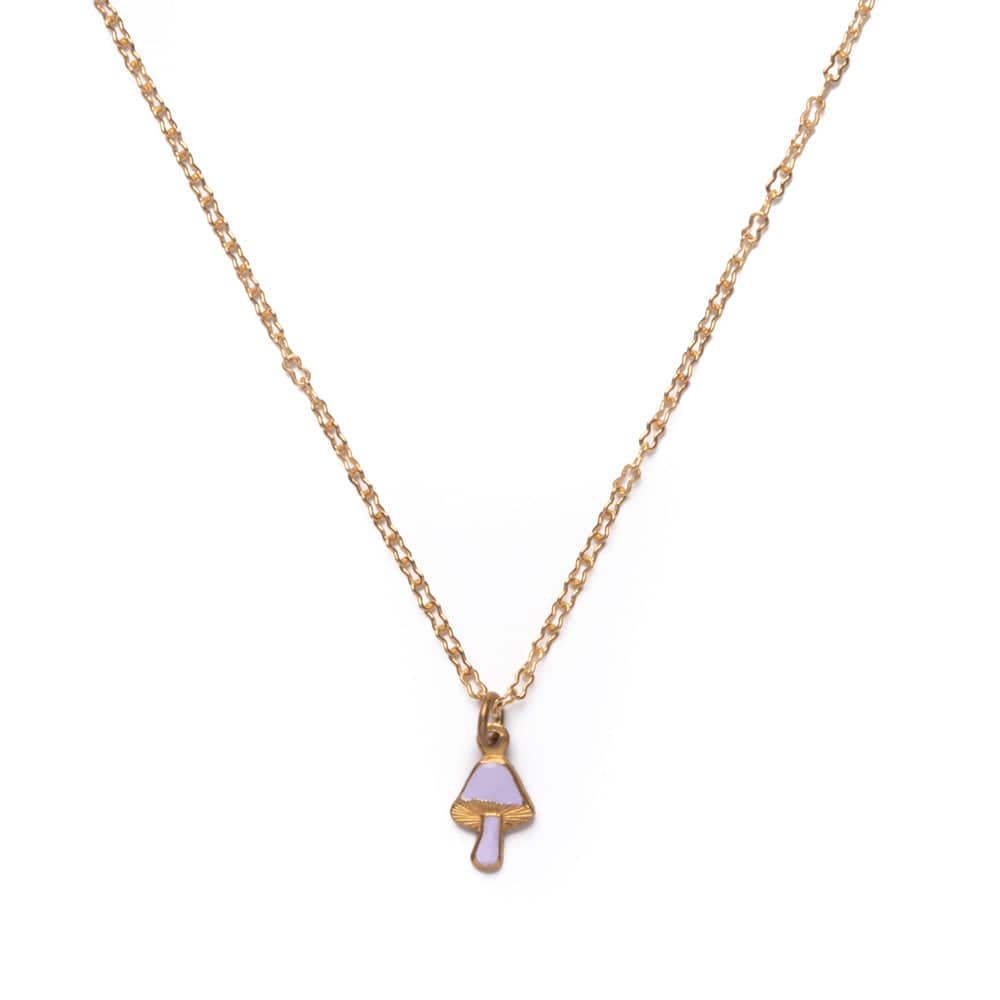 - Tiny brass mushrooms charm with hand applied enamel resin in Lilac