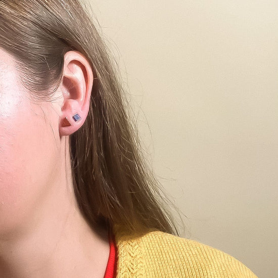 Tiny Square Studs in Sodalite