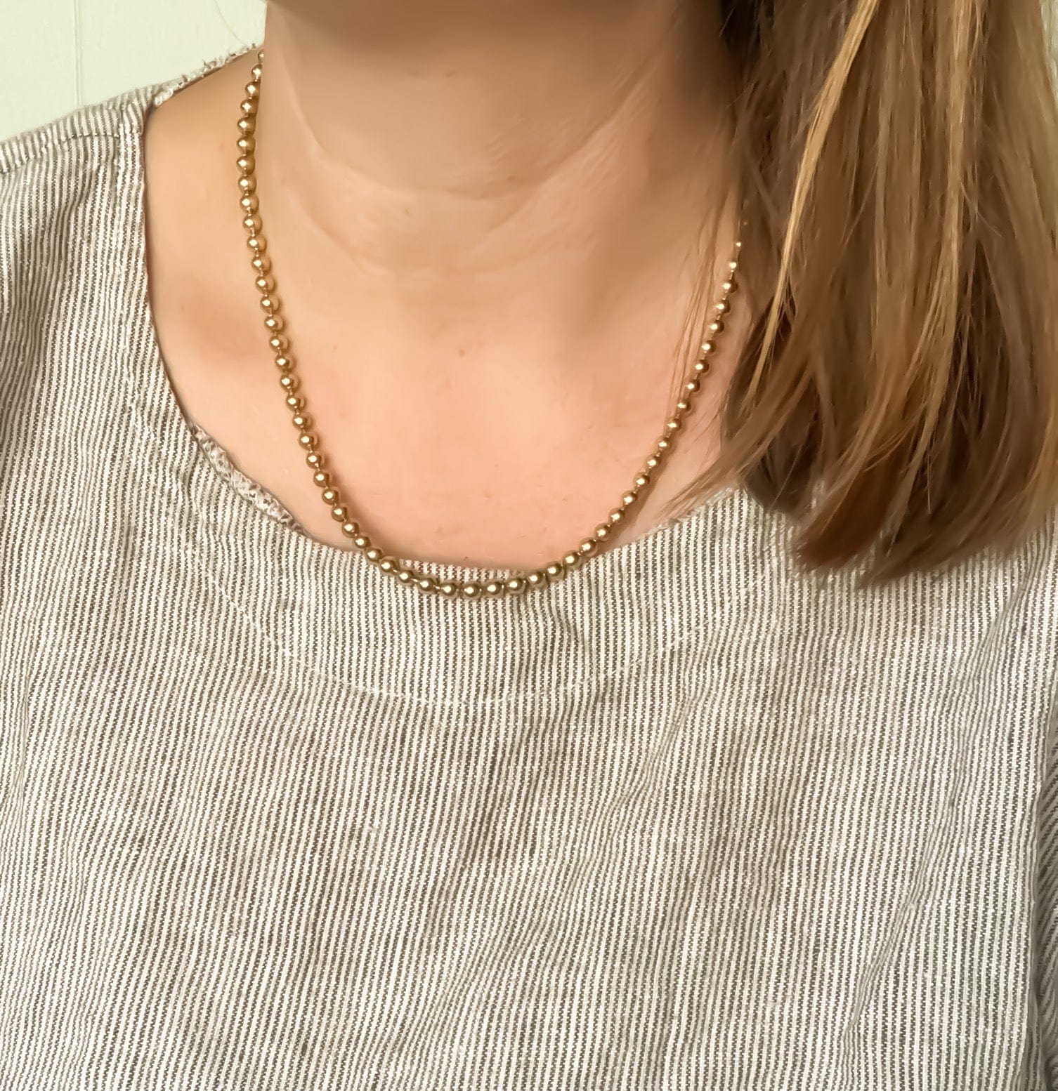 Vintage brass ball chain. Beads are 4mm wide. 18 1/2" length.