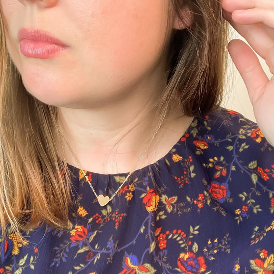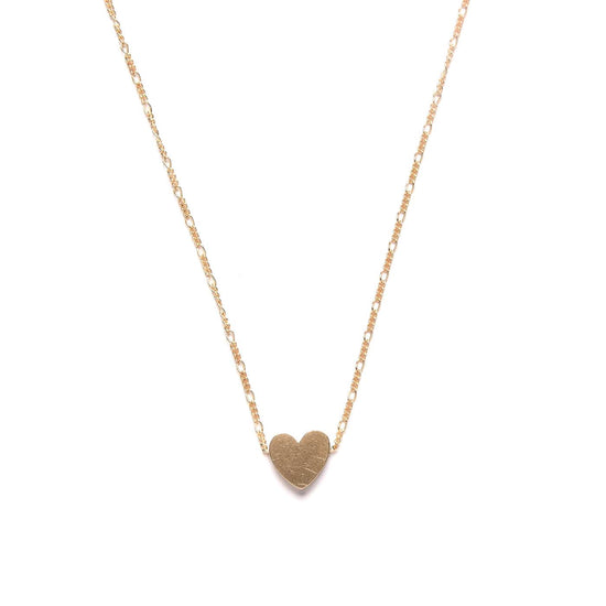 Vintage brass heart slider charm on new 14kt gold fill figaro chain, 17" in length. Heart charm is 11mm x 10mm.