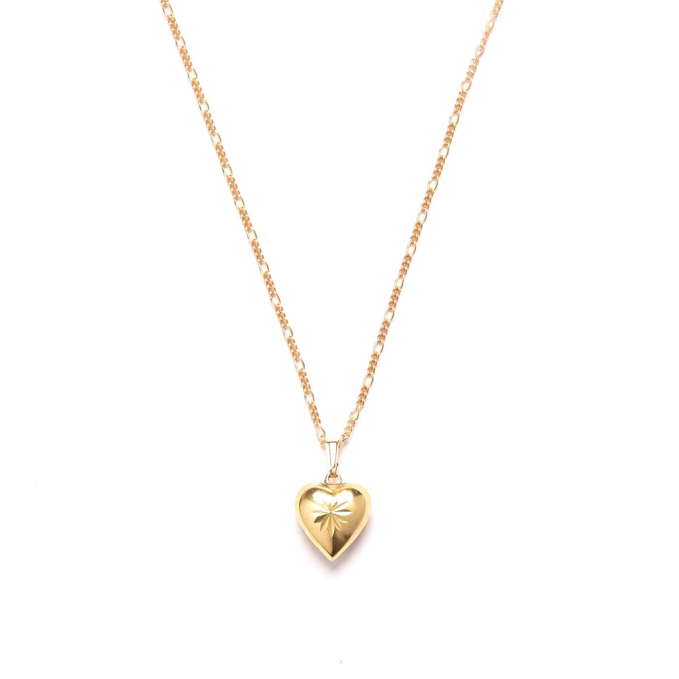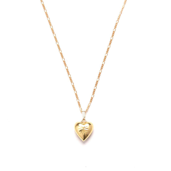 Vintage brass puffy heart charm with engraved starburst. Charm is 12mm x 14mm.