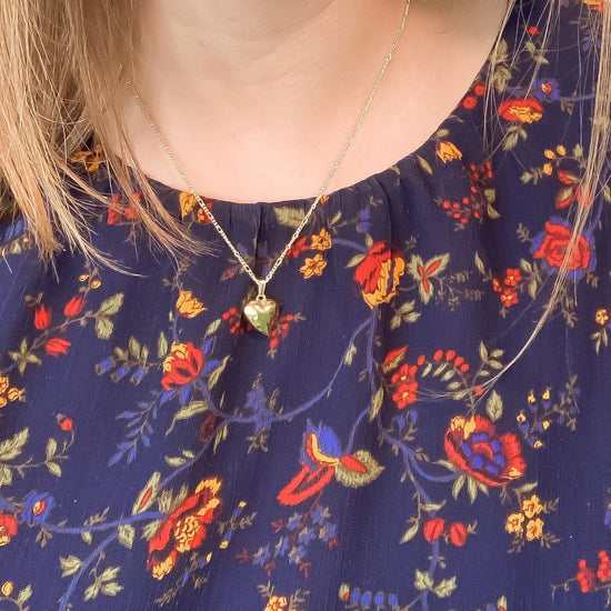 Vintage Puffy Heart Charm Necklace C