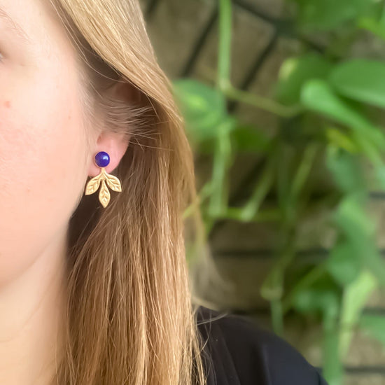 - Lapis cabochons in brass bezels with sterling silver posts and backs