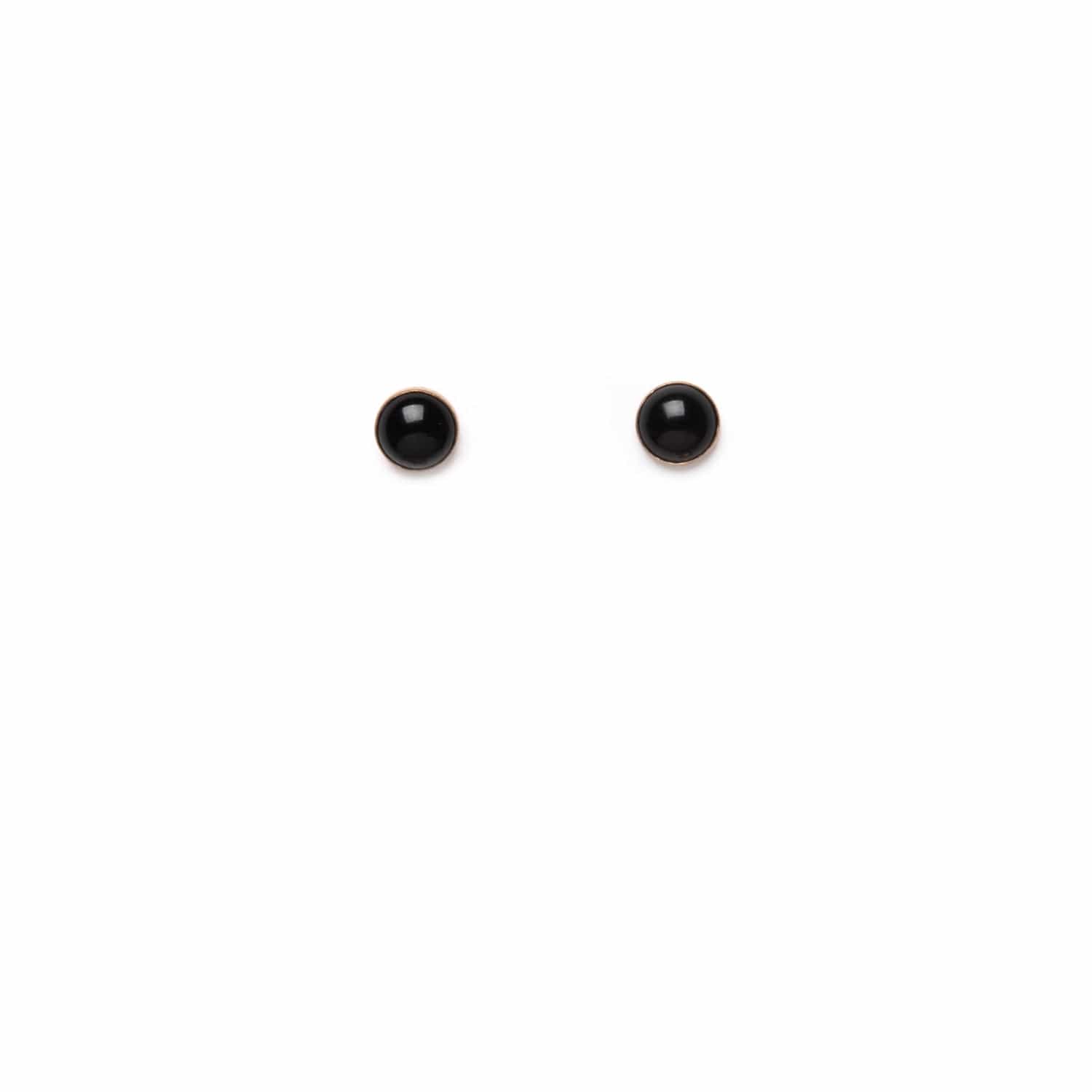 - Onyx cabochons in brass bezels with sterling silver posts and backs
